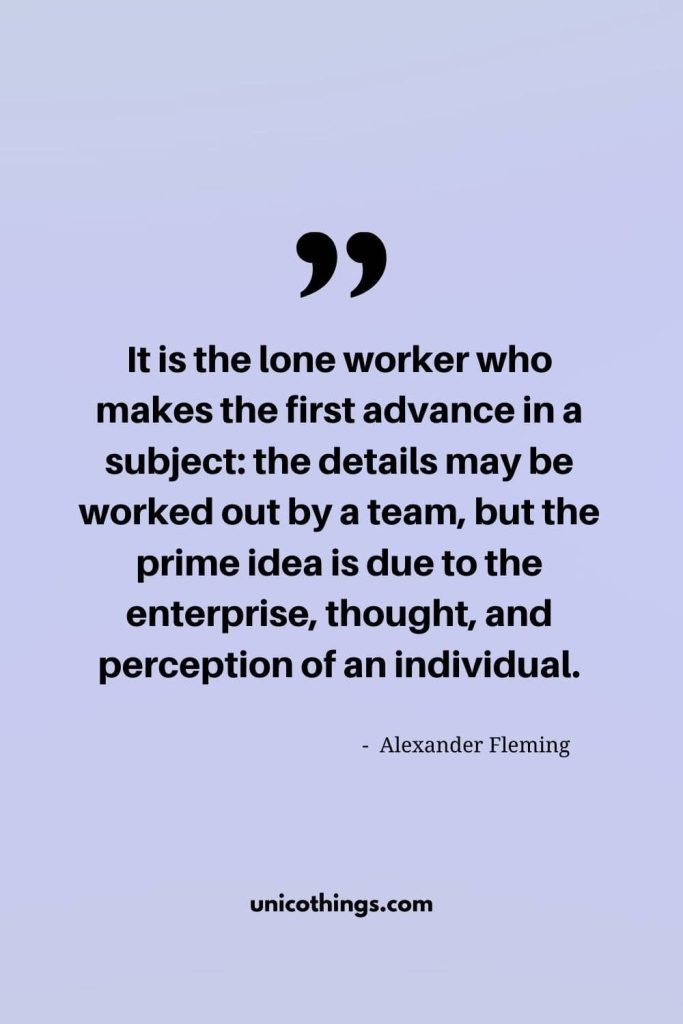 5. “It is the lone worker who makes the first advance in a subject: the details may be worked out by a team, but the prime idea is due to the enterprise, thought, and perception of an individual.” – Alexander Fleming