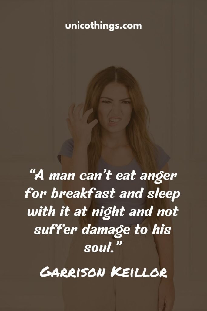 “A man can’t eat anger for breakfast and sleep with it at night and not suffer damage to his soul.” ― Garrison Keillor