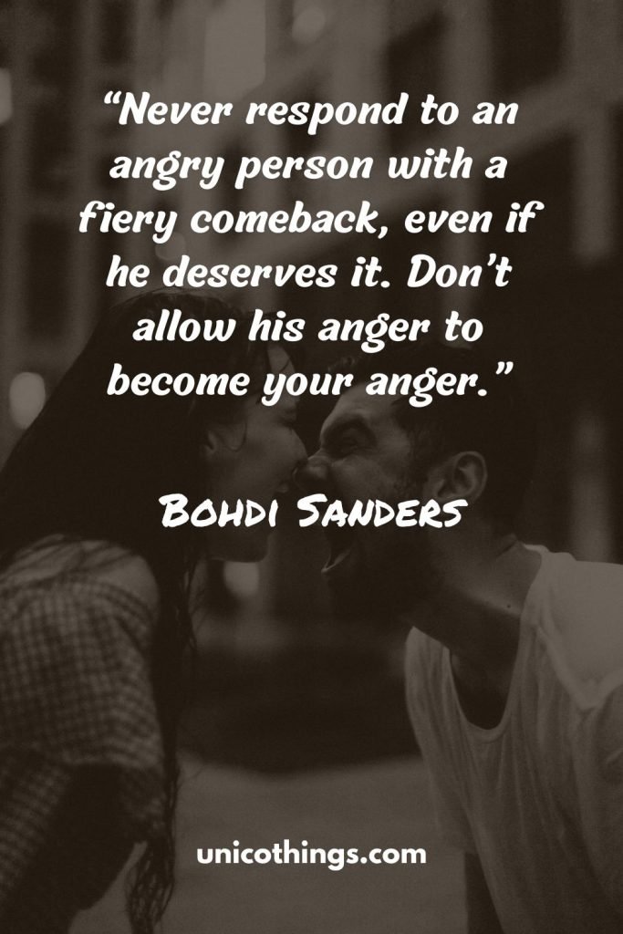 “Never respond to an angry person with a fiery comeback, even if he deserves it. Don’t allow his anger to become your anger.” ― Bohdi Sanders
