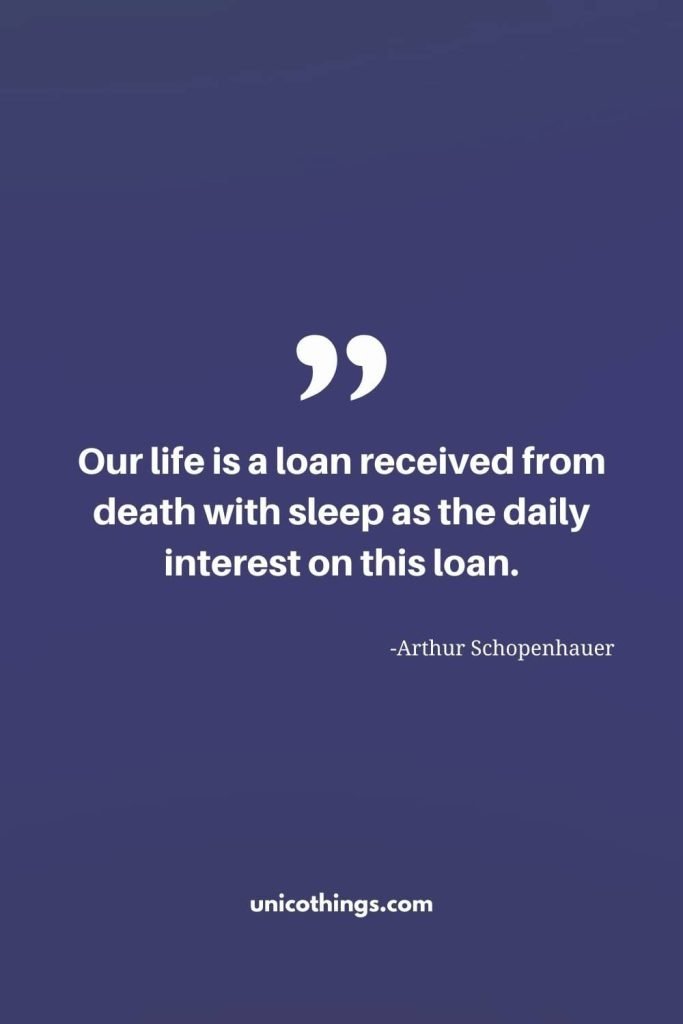 24. “Our life is a loan received from death with sleep as the daily interest on this loan.” – Arthur Schopenhauer