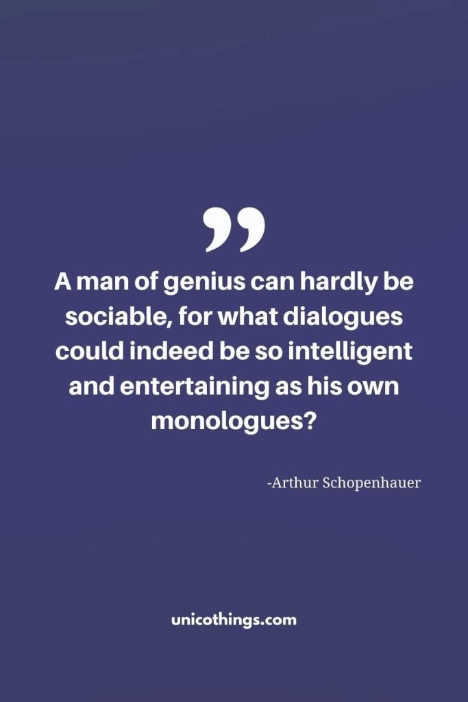 84. “A man of genius can hardly be sociable, for what dialogues could indeed be so intelligent and entertaining as his own monologues?” – Arthur Schopenhauer