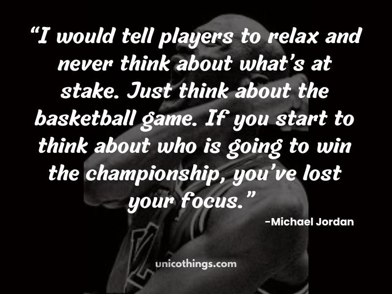 10. “I would tell players to relax and never think about what’s at stake. Just think about the basketball game. If you start to think about who is going to win the championship, you’ve lost your focus.” ― Michael Jordan