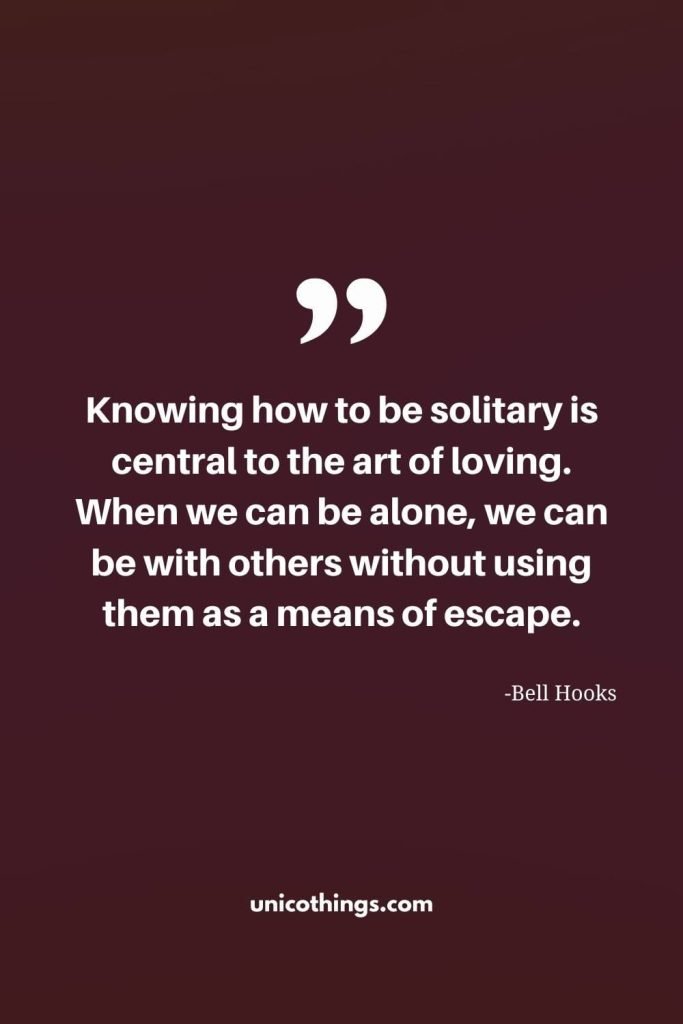84. “Knowing how to be solitary is central to the art of loving. When we can be alone, we can be with others without using them as a means of escape.” – Bell Hooks