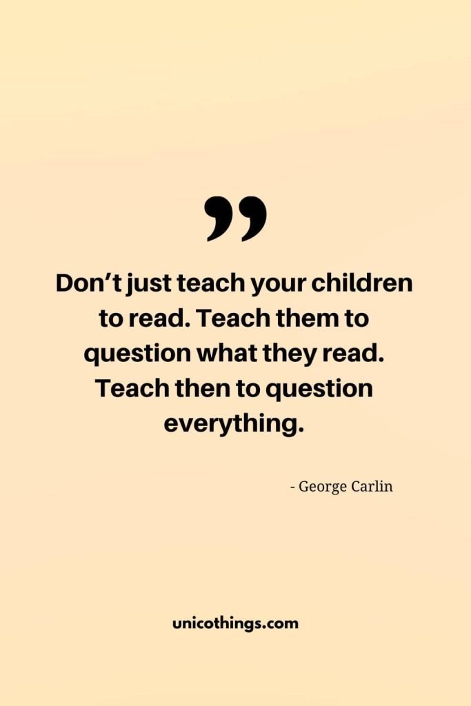 12. “Don’t just teach your children to read. Teach them to question what they read. Teach then to question everything.” – George Carlin