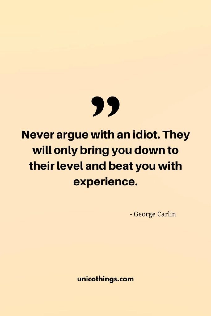 36. “Never argue with an idiot. They will only bring you down to their level and beat you with experience.” – George Carlin