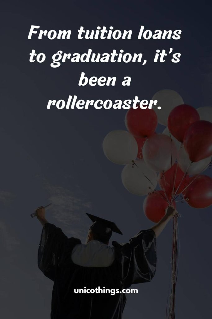 From those sleepless study nights to the anxious waiting period and the ecstatic moments during the closing event- these captions fit any graduation post. Good luck.