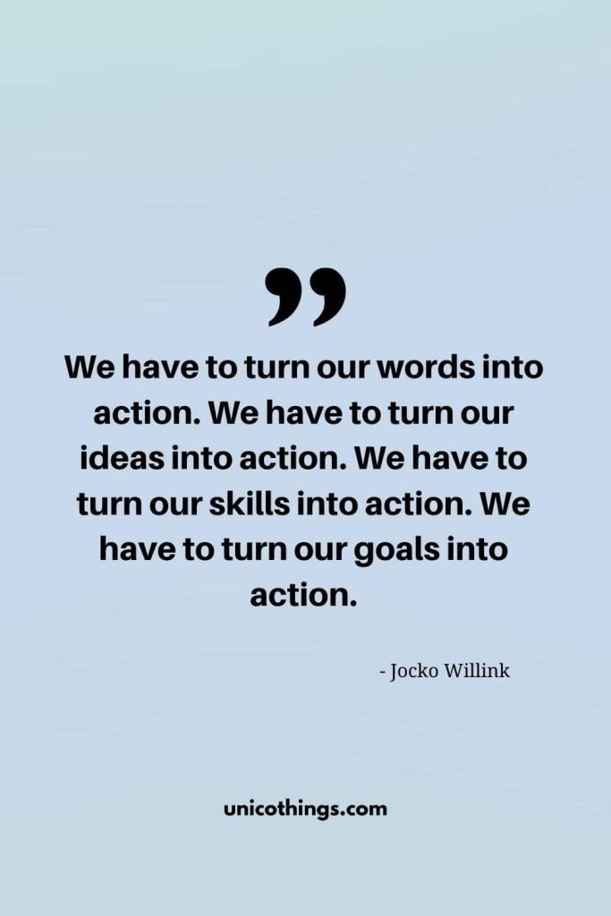 10. “We have to turn our words into action. We have to turn our ideas into action. We have to turn our skills into action. We have to turn our goals into action.” – Jocko Willink