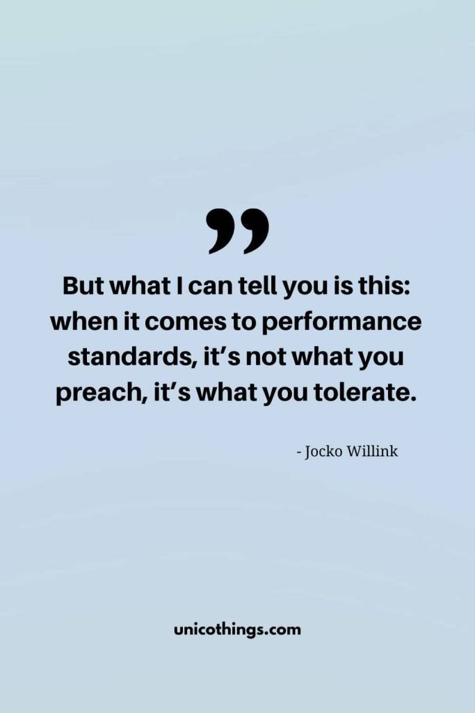 21. “But what I can tell you is this: when it comes to performance standards, it’s not what you preach, it’s what you tolerate.” – Jocko Willink