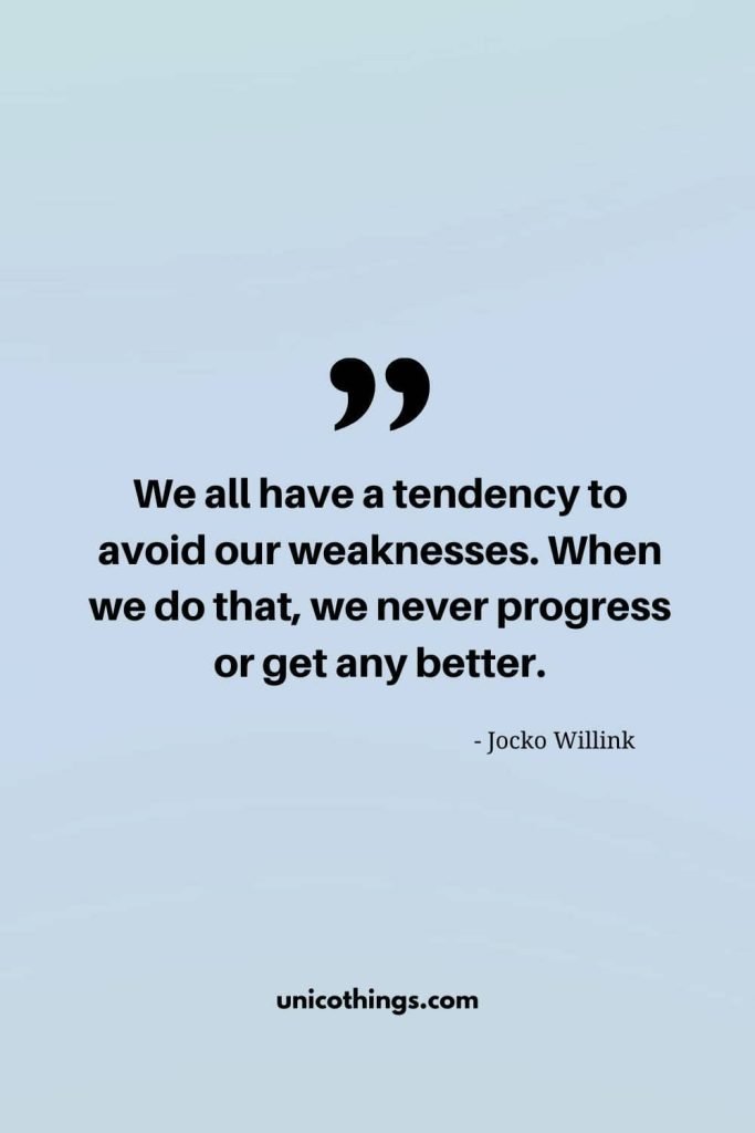 59. “We all have a tendency to avoid our weaknesses. When we do that, we never progress or get any better.” – Jocko Willink