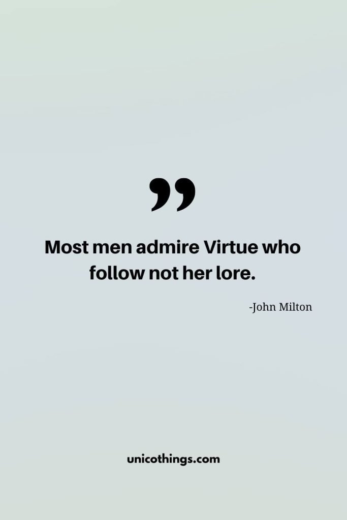 36. “Most men admire Virtue who follow not her lore.” – John Milton