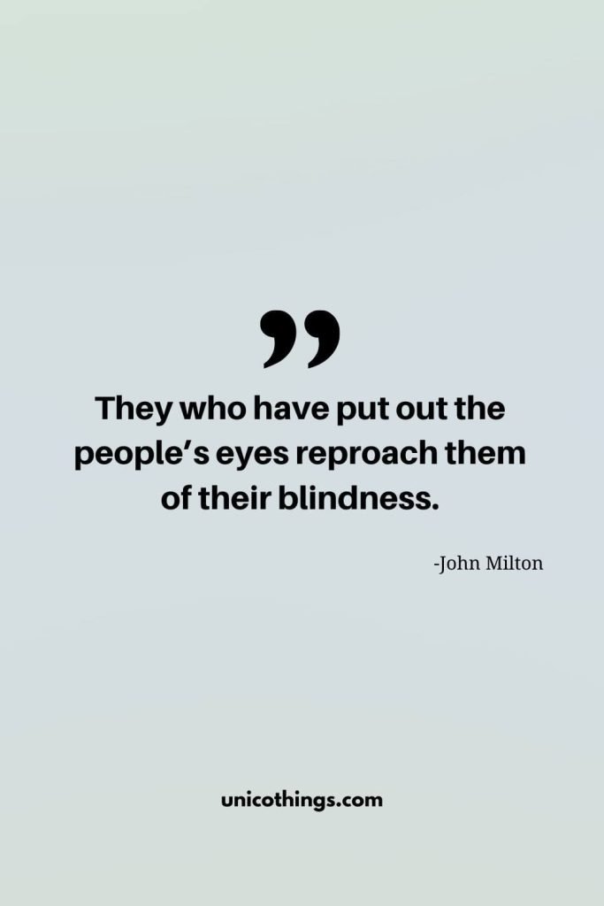 49. “They who have put out the people’s eyes reproach them of their blindness.” – John Milton