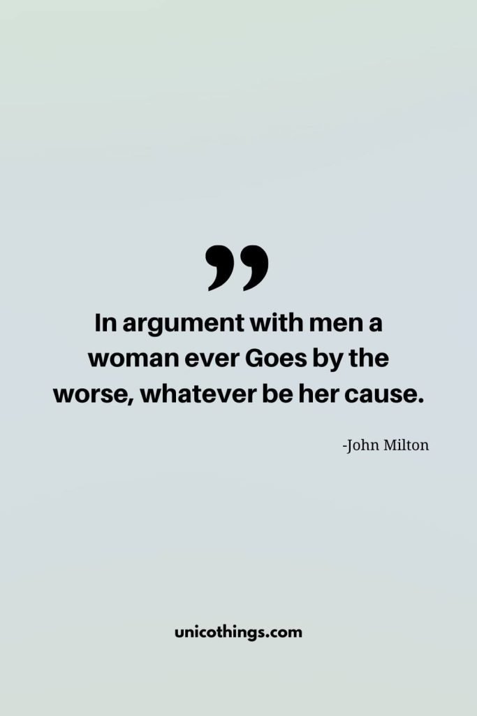 61. “In argument with men a woman ever Goes by the worse, whatever be her cause.” – John Milton