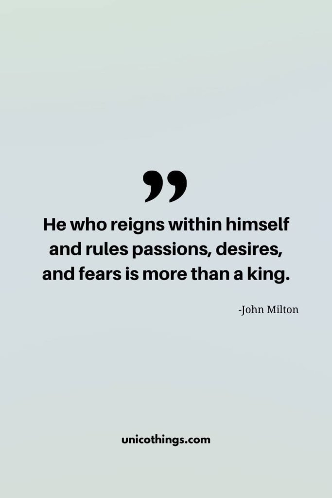 85. “He who reigns within himself and rules passions, desires, and fears is more than a king.” – John Milton