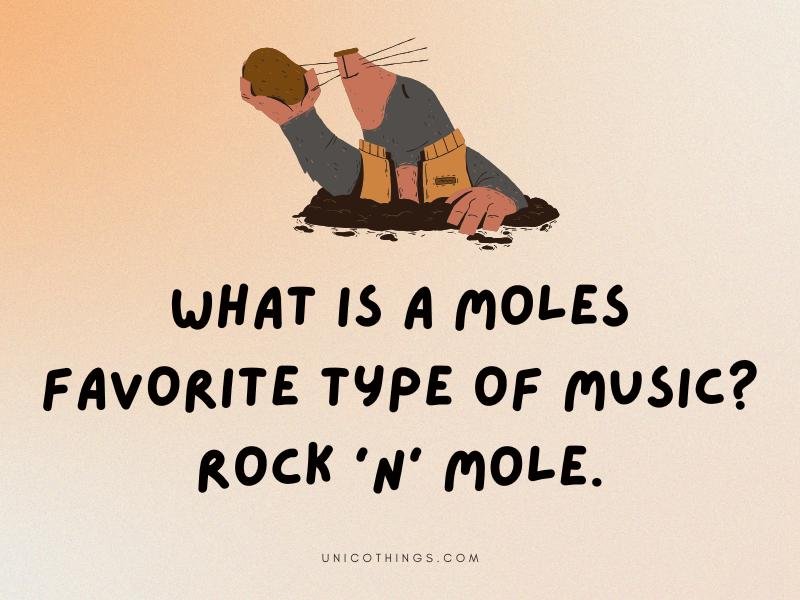 31. What is a moles favorite type of music? Rock ‘n’ mole.