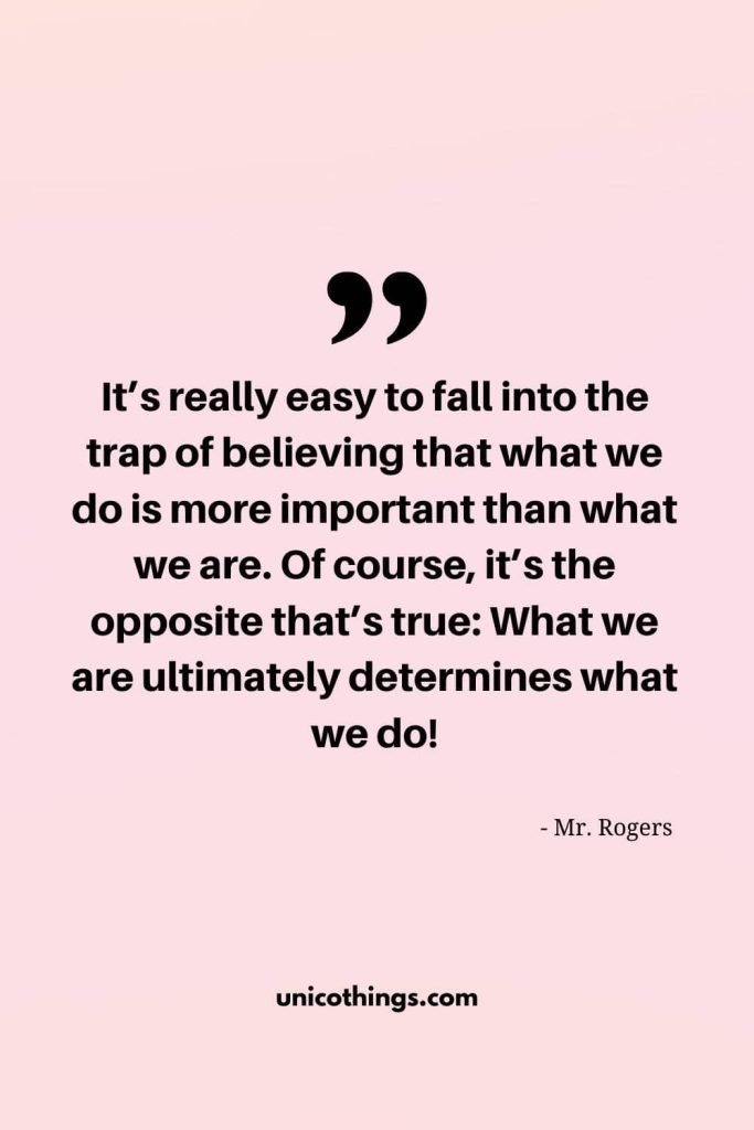 45. “It’s really easy to fall into the trap of believing that what we do is more important than what we are. Of course, it’s the opposite that’s true: What we are ultimately determines what we do!“
