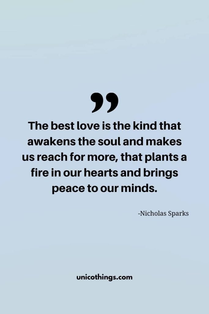 12. “The best love is the kind that awakens the soul and makes us reach for more, that plants a fire in our hearts and brings peace to our minds. ” – Nicholas Sparks