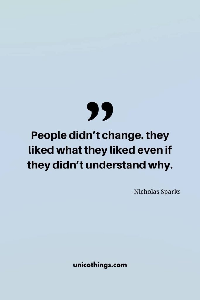 24. “People didn’t change. they liked what they liked even if they didn’t understand why.” – Nicholas Sparks