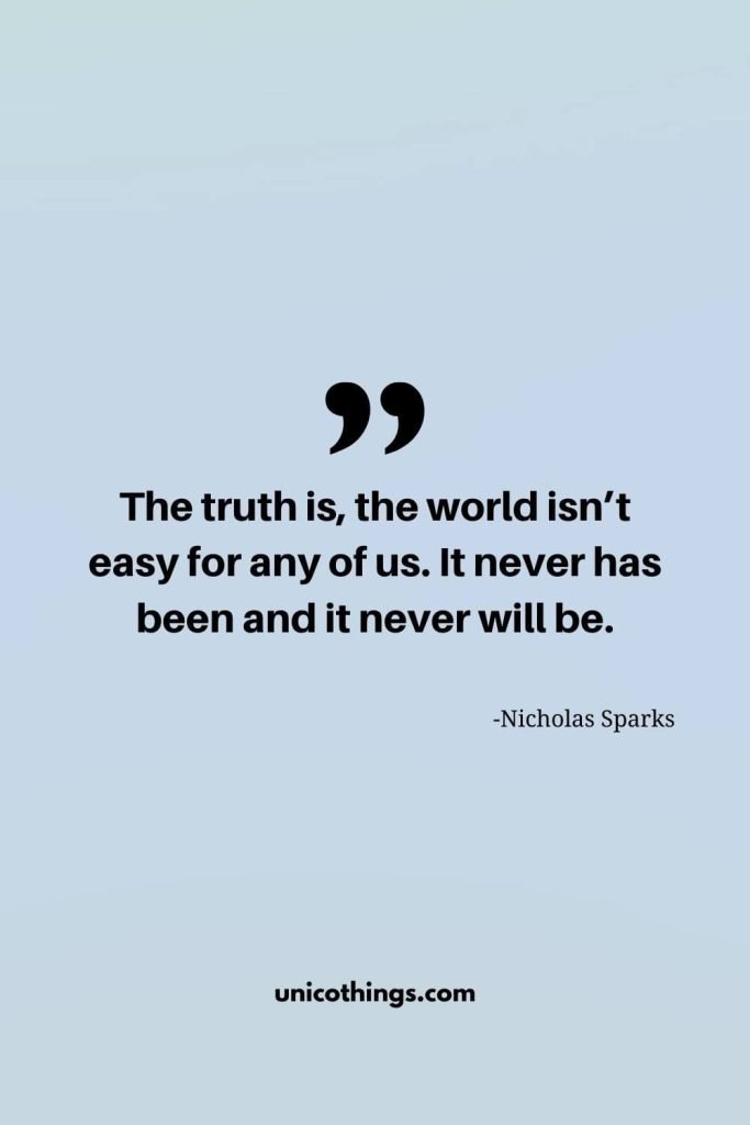 36. “The truth is, the world isn’t easy for any of us. It never has been and it never will be.” – Nicholas Sparks