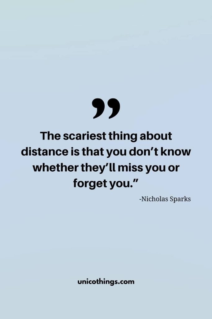 60. “The scariest thing about distance is that you don’t know whether they’ll miss you or forget you.” – Nicholas Sparks