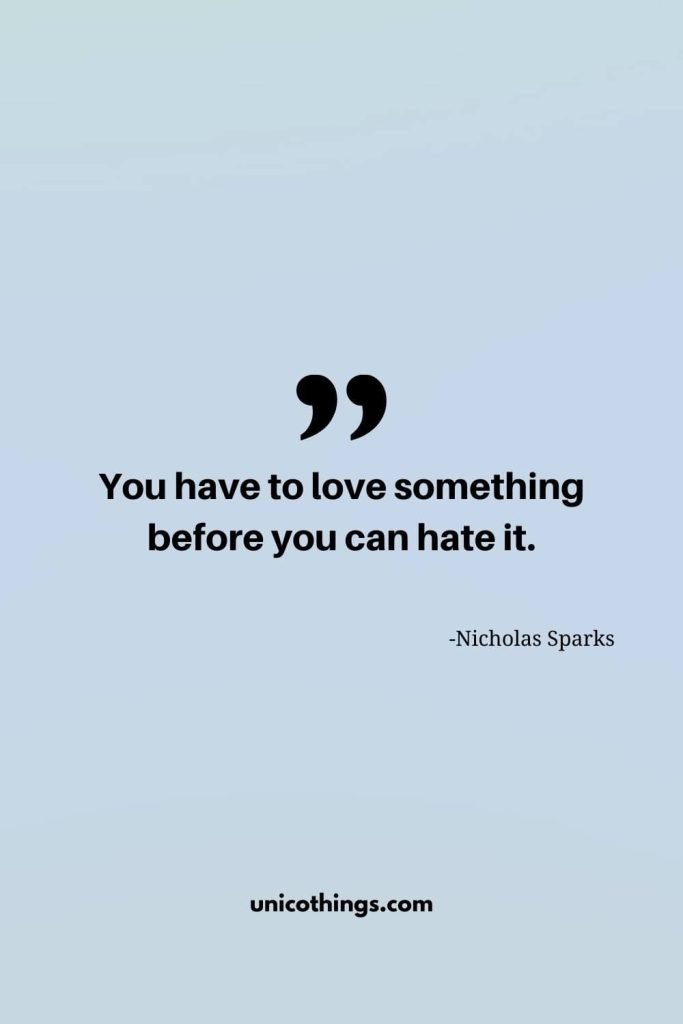 72. “You have to love something before you can hate it.” – Nicholas Sparks