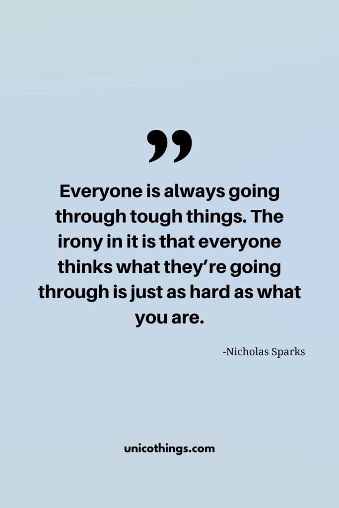 95. “Everyone is always going through tough things. The irony in it is that everyone thinks what they’re going through is just as hard as what you are.” – Nicholas Sparks