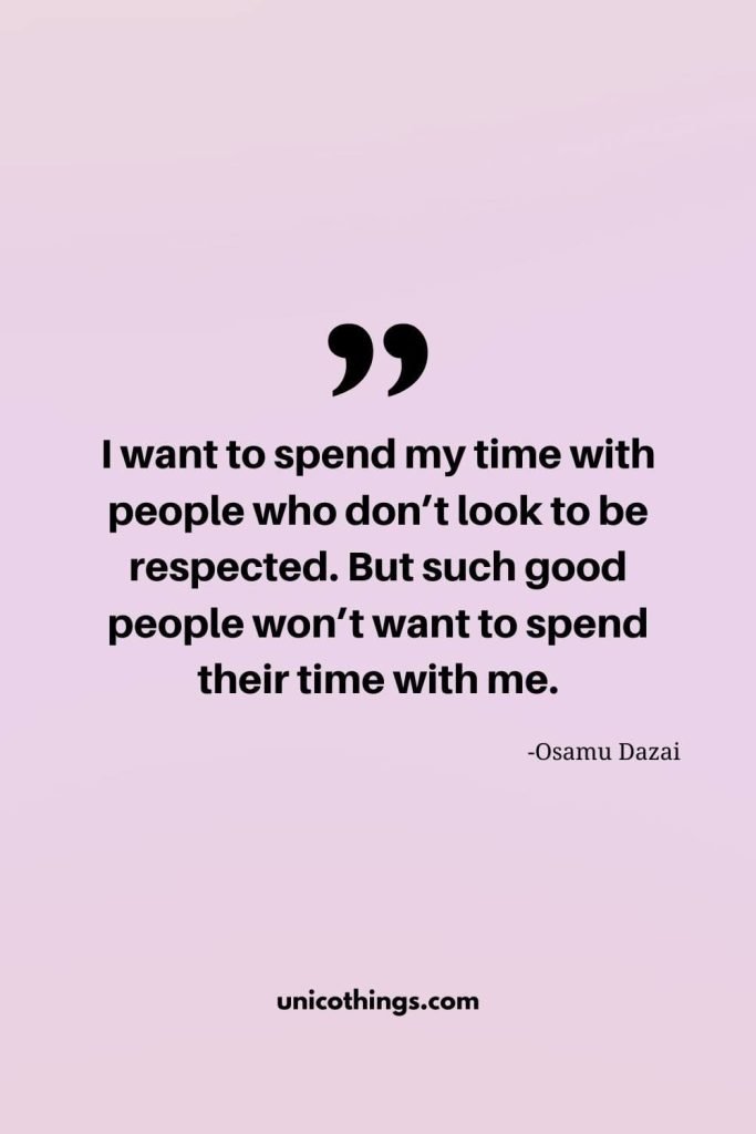 12. “I want to spend my time with people who don’t look to be respected. But such good people won’t want to spend their time with me.” – Osamu Dazai