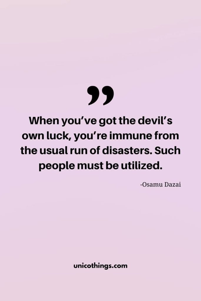 24. “When you’ve got the devil’s own luck, you’re immune from the usual run of disasters. Such people must be utilized.” – Osamu Dazai