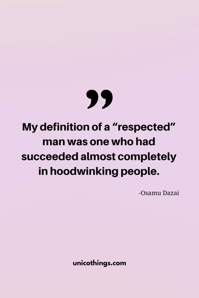 47. “My definition of a “respected” man was one who had succeeded almost completely in hoodwinking people.” – Osamu Dazai