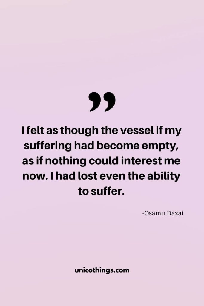 59. “I felt as though the vessel if my suffering had become empty, as if nothing could interest me now. I had lost even the ability to suffer.” – Osamu Dazai