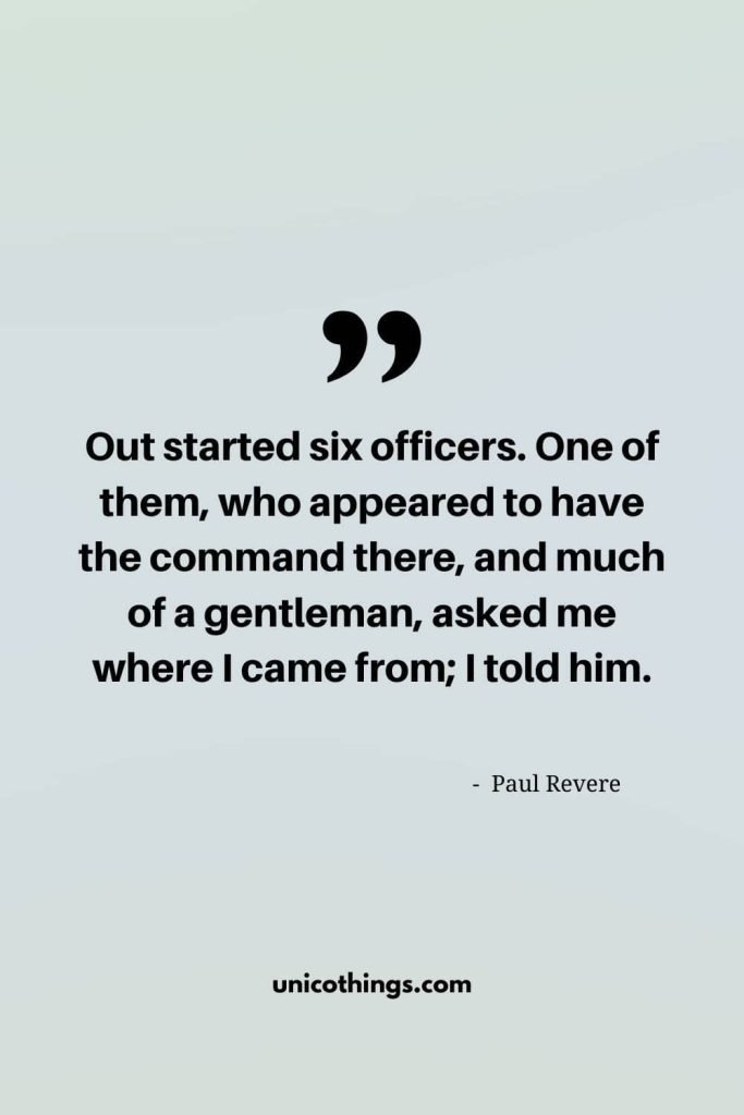 5. “Out started six officers. One of them, who appeared to have the command there, and much of a gentleman, asked me where I came from; I told him.” – Paul Revere
