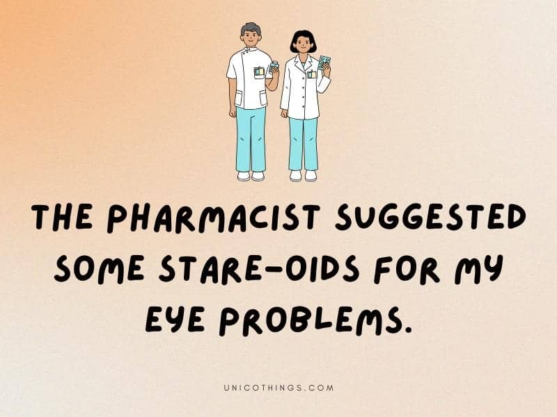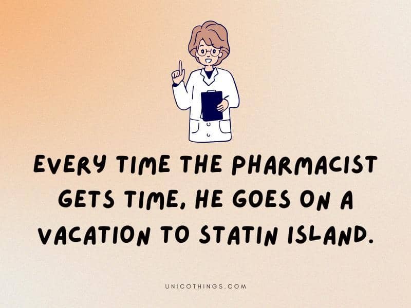 The pharmacist, usually a qualified person, will advise you on what to buy and how to use it. They will also tell you about any other things you need to do, such as not taking certain medicines simultaneously or not drinking alcohol while taking some medications. Below, we’ve compiled a list of Pharmacy puns that are the best and most hilarious you’ll love. So scroll down and see what we’ve got you covered.