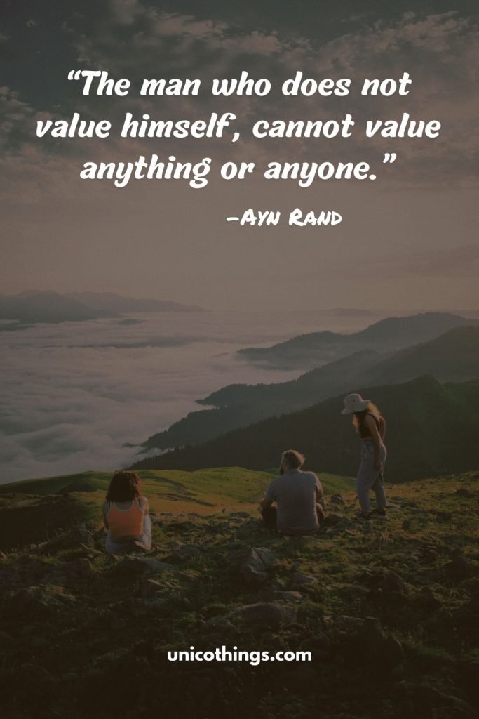 “The man who does not value himself, cannot value anything or anyone.” ― Ayn Rand