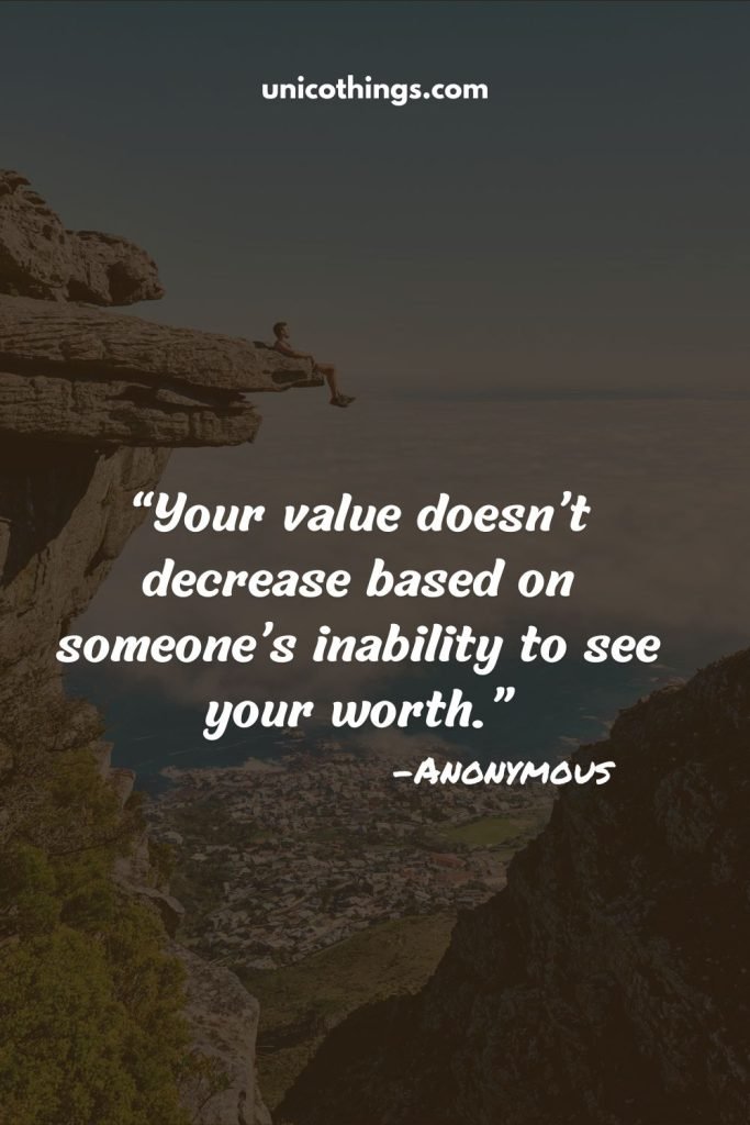 “Your value doesn’t decrease based on someone’s inability to see your worth.” ― Anonymous