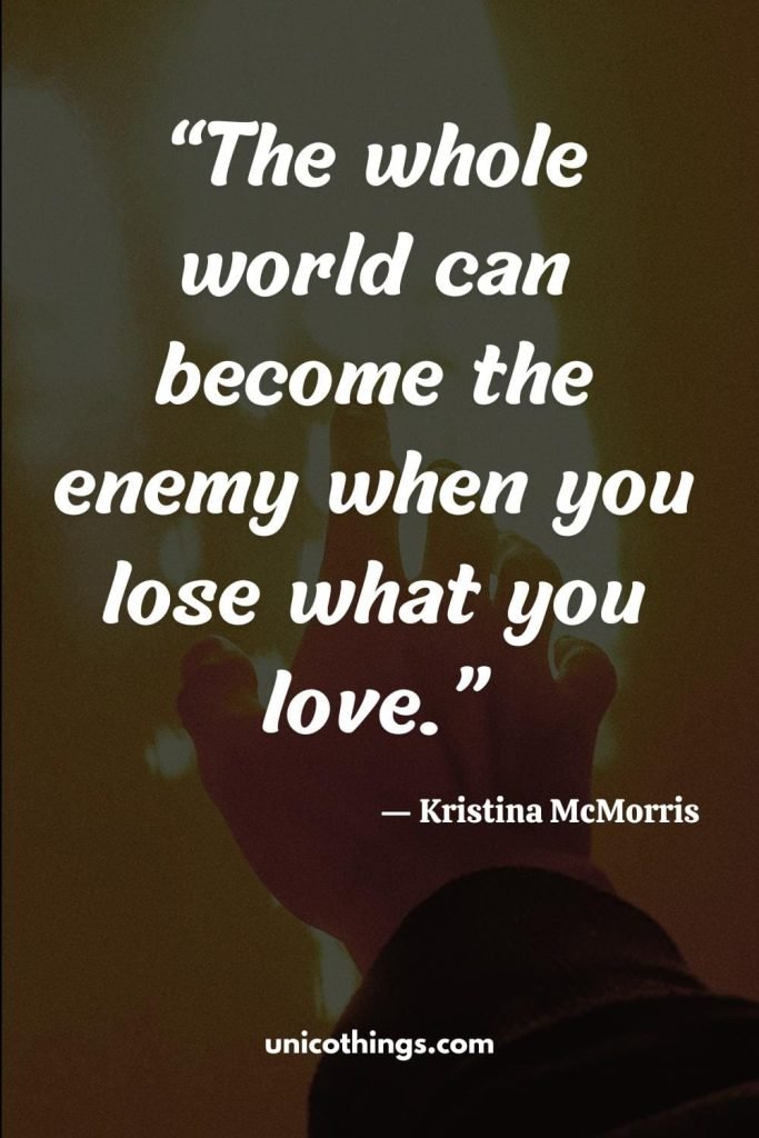 1. “The whole world can become the enemy when you lose what you love.” ― Kristina McMorris