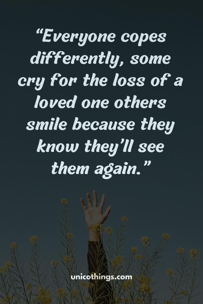 24. “Everyone copes differently, some cry for the loss of a loved one others smile because they know they’ll see them again.” ― Unknown