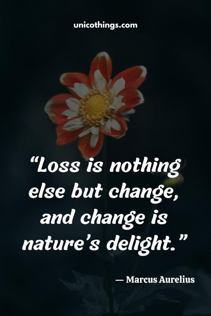 36. “Loss is nothing else but change, and change is nature’s delight.” ― Marcus Aurelius