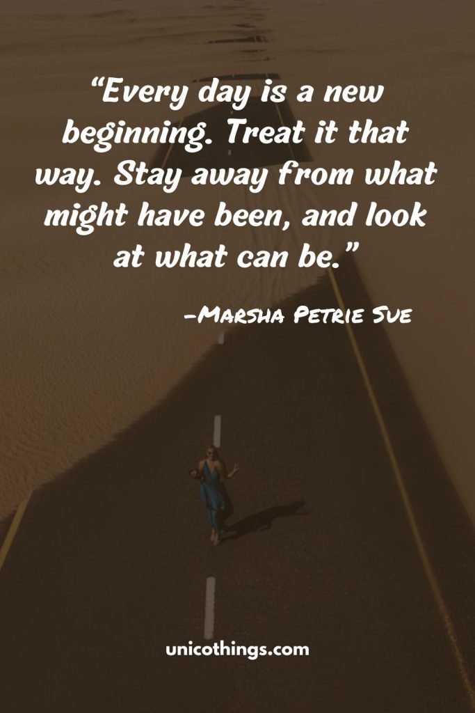 1. “Every day is a new beginning. Treat it that way. Stay away from what might have been, and look at what can be.” ~ Marsha Petrie Sue