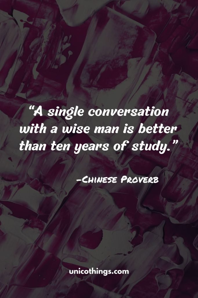 “A single conversation with a wise man is better than ten years of study.” ― Chinese Proverb