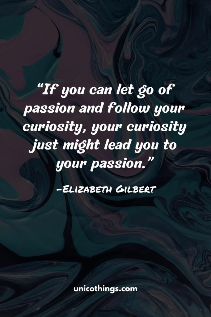 “If you can let go of passion and follow your curiosity, your curiosity just might lead you to your passion.” ― Elizabeth Gilbert