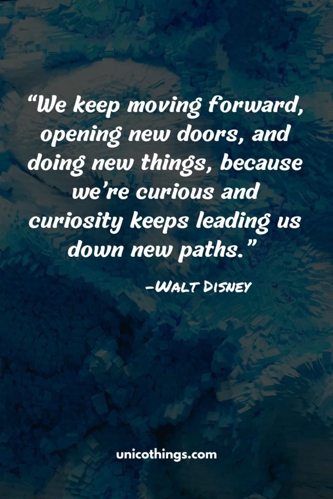 “We keep moving forward, opening new doors, and doing new things, because we’re curious and curiosity keeps leading us down new paths.” ― Walt Disney