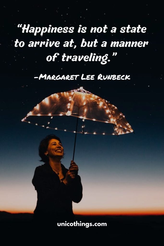 “Happiness is not a state to arrive at, but a manner of traveling.” ― Margaret Lee Runbeck