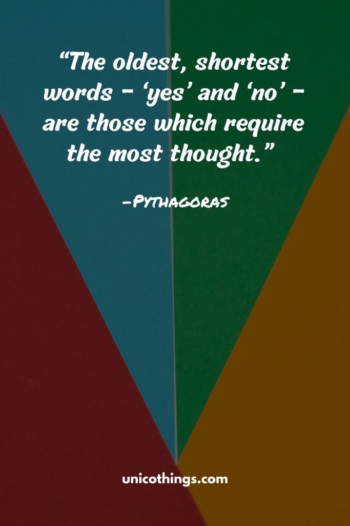 “The oldest, shortest words – ‘yes’ and ‘no’ – are those which require the most thought.” ― Pythagoras