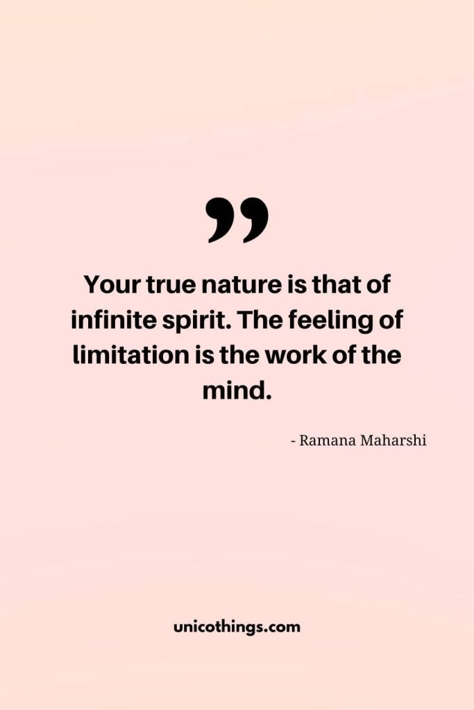 100. “Your true nature is that of infinite spirit. The feeling of limitation is the work of the mind.” – Ramana Maharshi