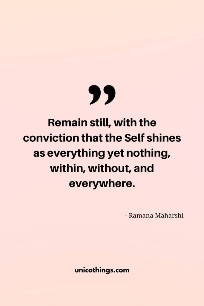 70. “Remain still, with the conviction that the Self shines as everything yet nothing, within, without, and everywhere.” – Ramana Maharshi