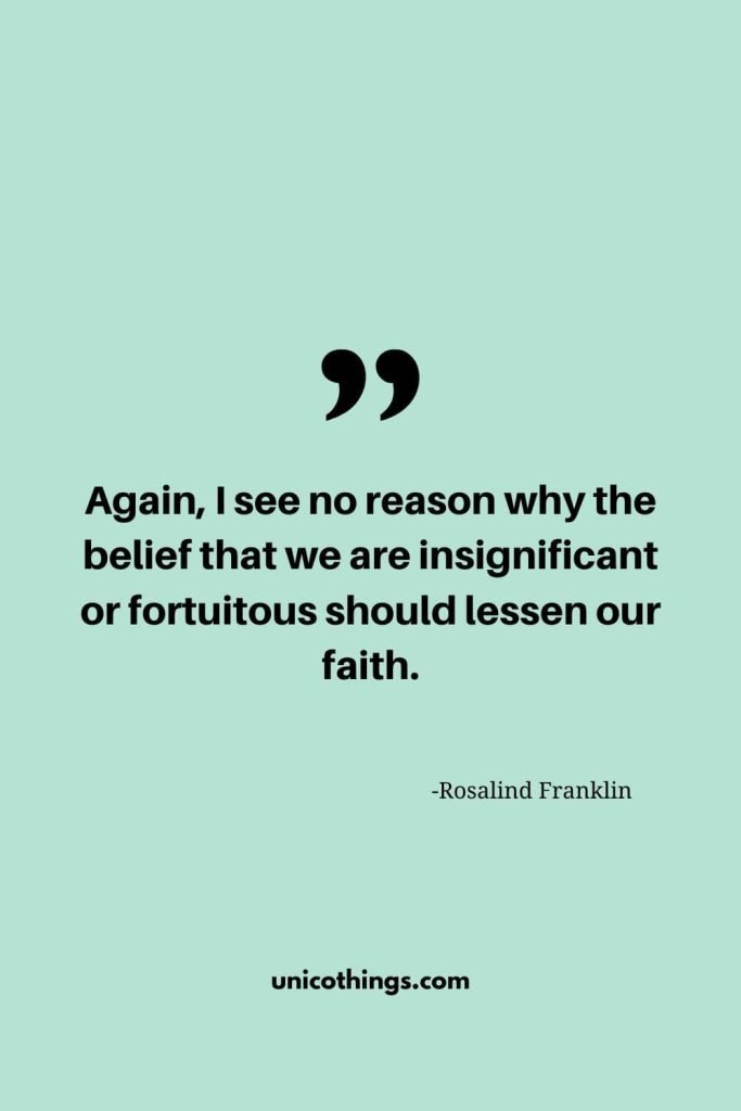 11. “Again, I see no reason why the belief that we are insignificant or fortuitous should lessen our faith.” – Rosalind Franklin