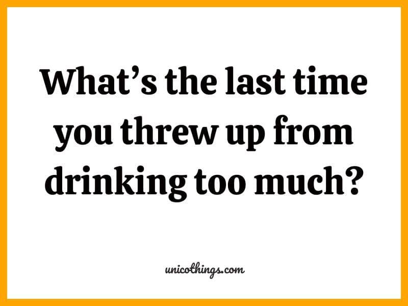 31. What’s the last time you threw up from drinking too much?