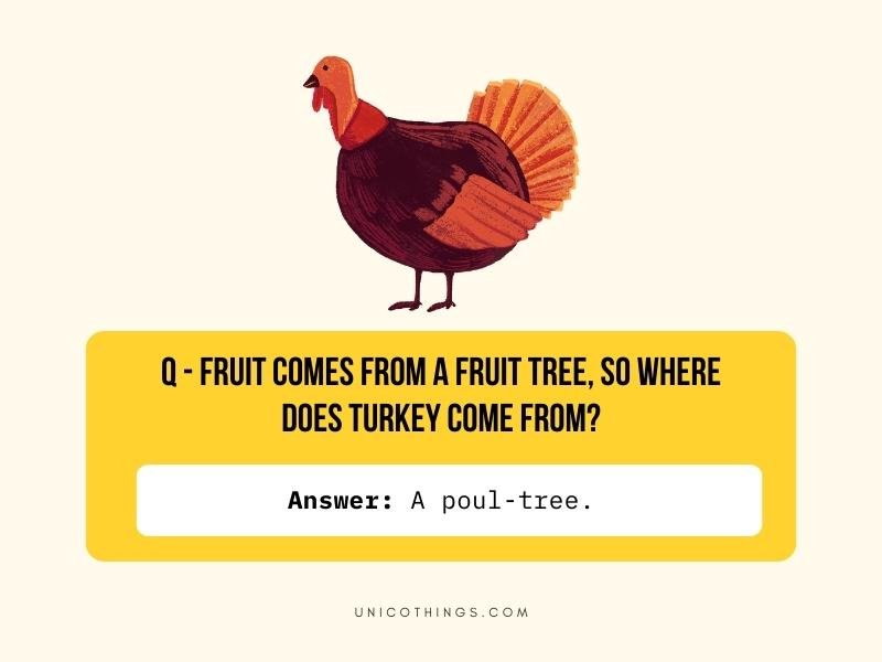 1. Fruit comes from a fruit tree, so where does turkey come from?