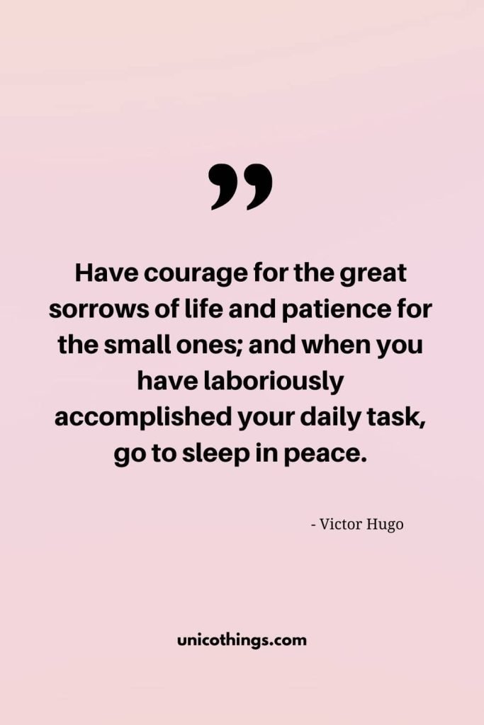 10. “Have courage for the great sorrows of life and patience for the small ones; and when you have laboriously accomplished your daily task, go to sleep in peace.” – Victor Hugo