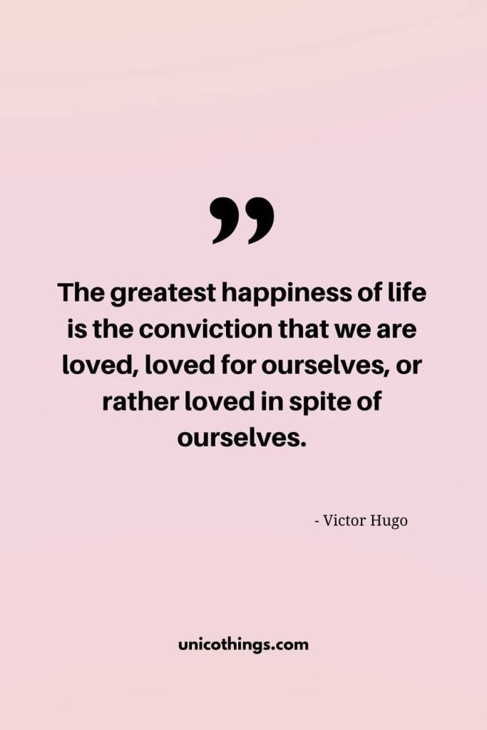 100. “The greatest happiness of life is the conviction that we are loved, loved for ourselves, or rather loved in spite of ourselves.” – Victor Hugo