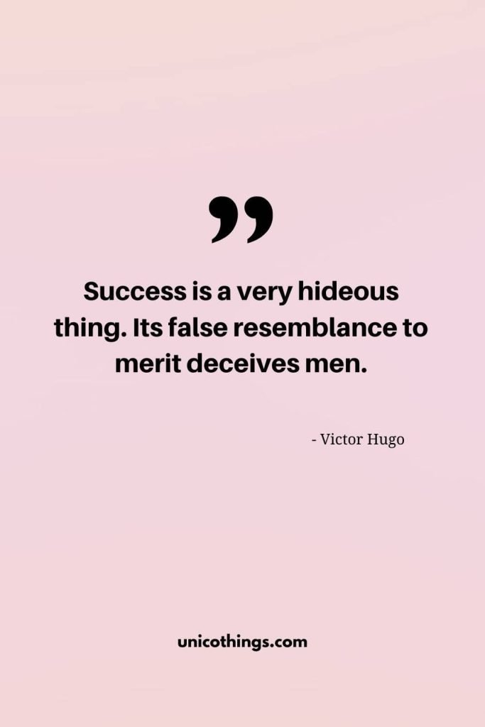 110. “Success is a very hideous thing. Its false resemblance to merit deceives men.” – Victor Hugo